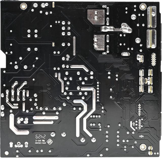 ▼主電路板背面沒有任何元件,焊點做工良好,部分大電流路徑有敷錫