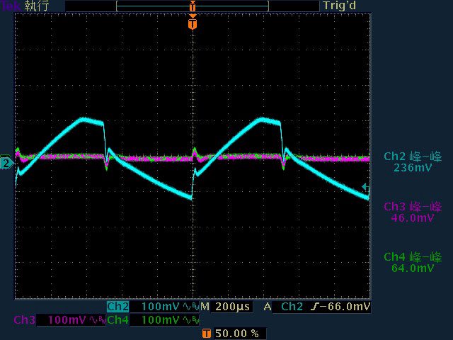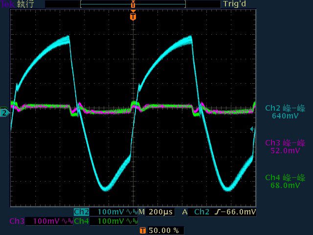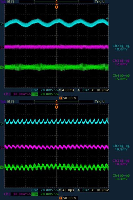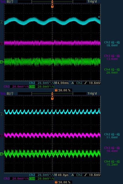 18mV/13.6mV/20mV,高頻漣波分別為11.6mV/10.4mV/15.2mV