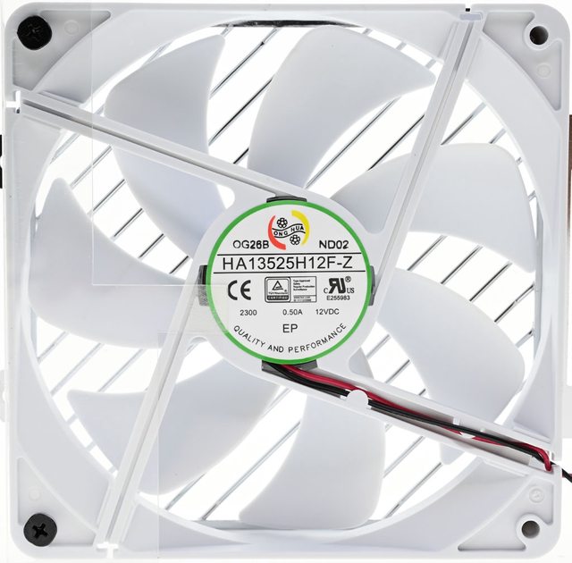 ▼採用白色HONG HUA HA13525H12F-Z 12V/0.5A風扇,並設置氣流導風片