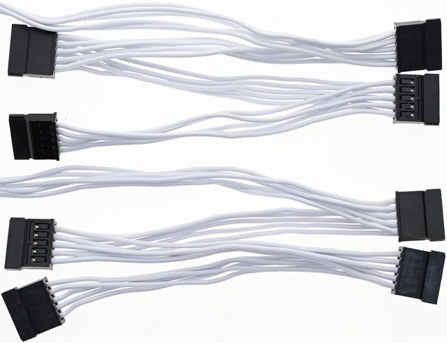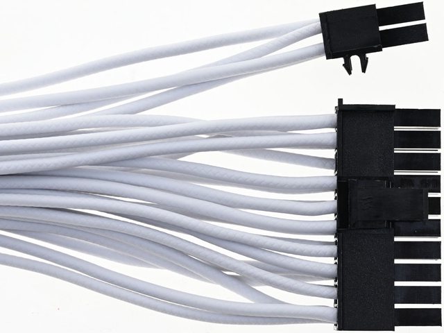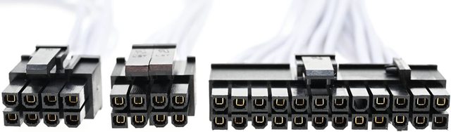 ○全模組化設計,採用白色壓紋線材搭配黑色模組化連接器。提供1個ATX 20+4P、2個