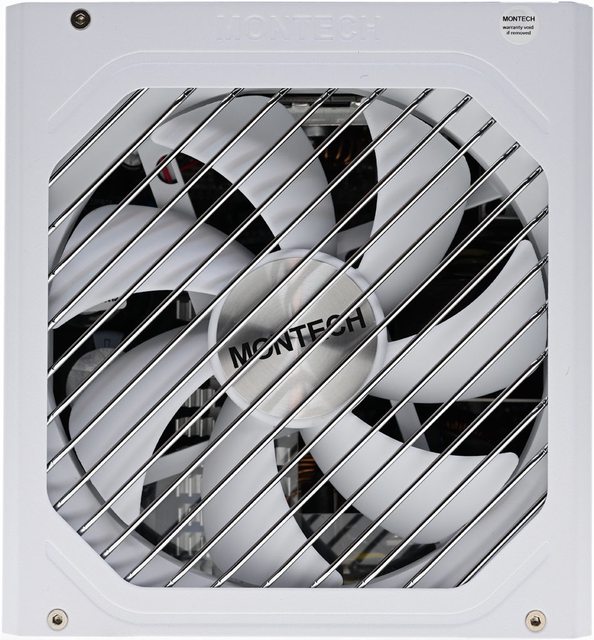 ▼亮銀色直條斜向風扇護網上方外殼及扇葉軸心銘牌有MONTECH字樣