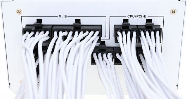 ●全模組化設計,採用白色壓紋線材搭配黑色模組化連接器,MB/CPU/PCIe採用鍍金高電