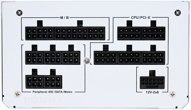 ▼黑色模組化線組輸出插座有名稱標示,左下方有TITAN PLA名稱