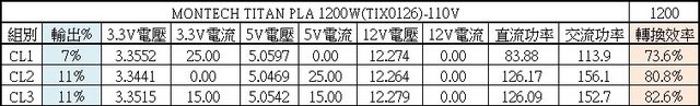 18mV/13.6mV/20mV,於純12V全負載輸出下12V/5V/3.3V各路低頻漣波分別為
