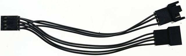 ▼隨附1對2風扇分接線,可同步轉速控制PWM信號,但只會回傳有4條線接頭的風扇轉速