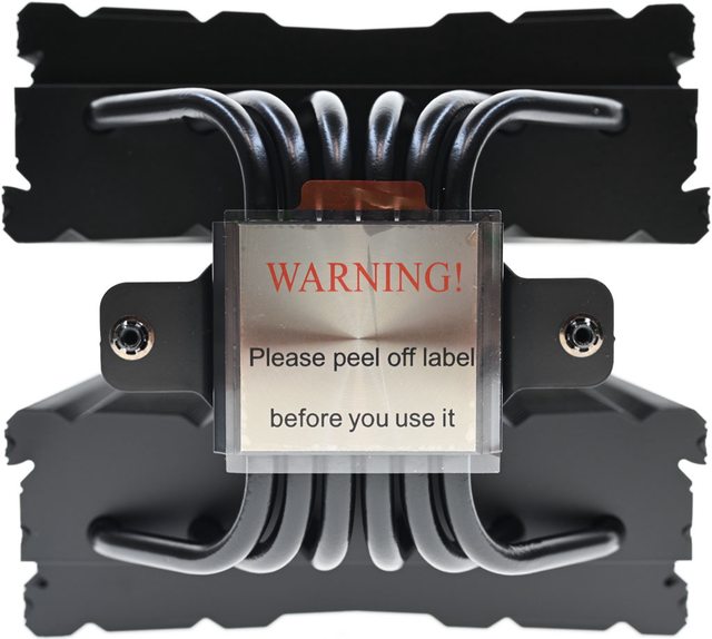 ▼散熱器底座的處理器接觸面有保護貼,上面用英文標示"警告!使用前請撕除保護貼"