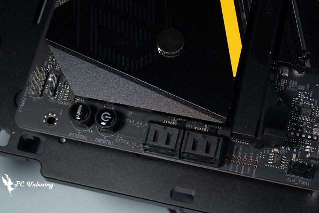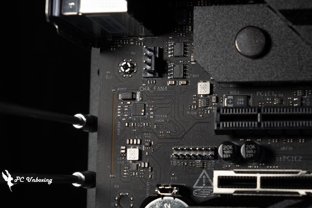 ▲ 背面配有強化背板,但主要集中在核心使用區塊:第一槽顯示卡、記憶體、處理器散熱