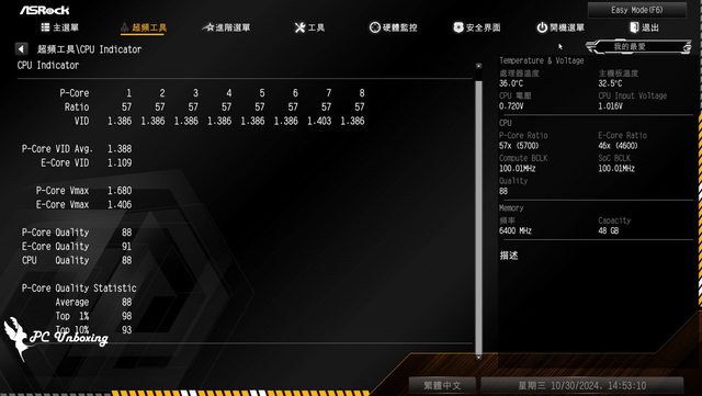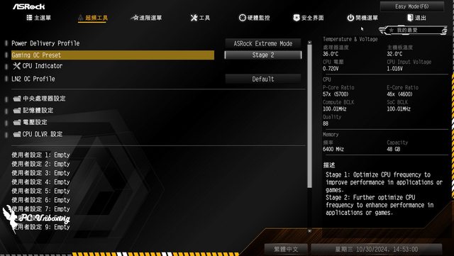 48GB (2x24GB) 記憶體嘗試再次超頻看看,之前在 Z790 AORUS TACHYON 上超頻到 8600