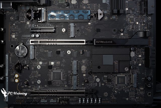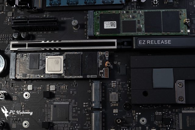 放記憶體超頻上限,擴充性部分則有板載六個 M.2 插槽(包含一個 PCIe Gen5 x4)與兩