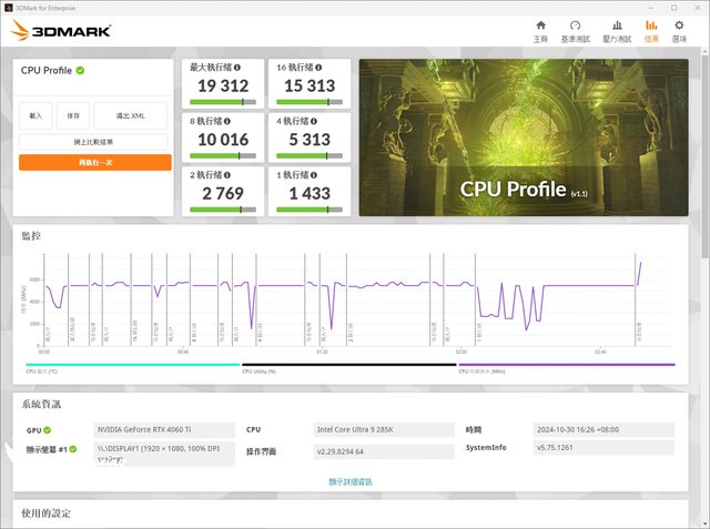 3DMark CPU Profile 本項測試會分別測試 MAX、16、8、4、2、1 執行緒的性能,而 16