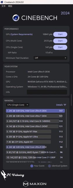 境遊戲模擬測試的 Fire Strike 中,285K 獲得 52607 的物理分數;而 1440p 畫質