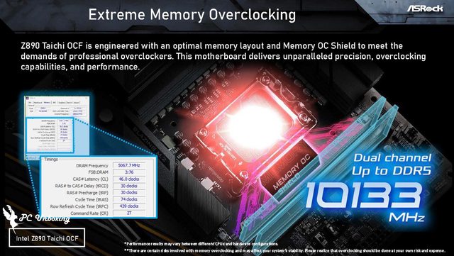 先前釋出消息標榜這張主機板可以支援到 DDR5-10133 MT/s CL 46-30-30-74 並通過壓力