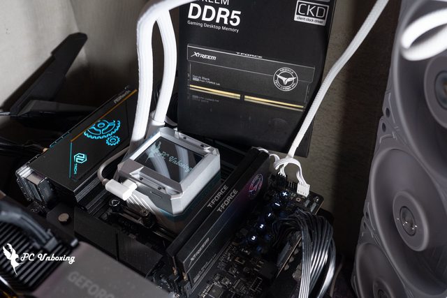 加貼 CKD 貼紙,CPU 散熱器使用一體式水冷;記憶體則是保持普通安裝外加風扇直吹協助