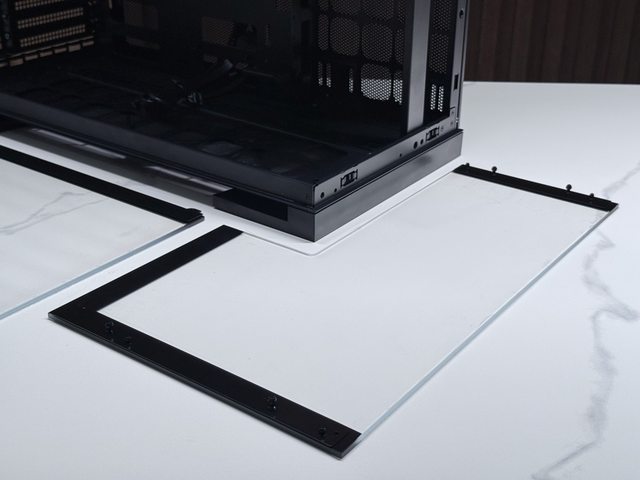 前玻璃面板上下皆用球型卡扣固定,左側玻璃側板則是上方球型卡扣、下方卡槽固定。兩