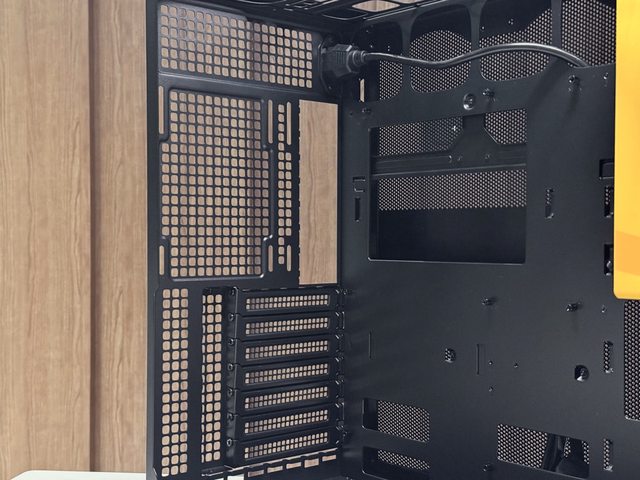 電源朝上方安裝,具備自己的獨立散熱區域,線材從右下方穿出,個人則覺得開孔可以設