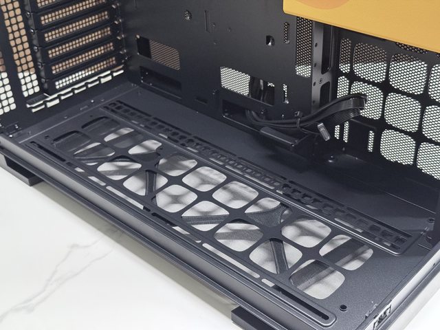 底部最多能安裝3顆140mm風扇,如果搭配顯示卡直立架則是2顆140mm,冷排方面底部只