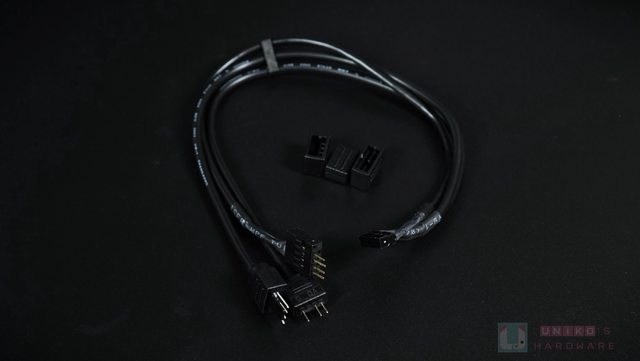 線材包括 1 根 RGB 4-PIN 一開二、1 根 ARGB 3-PIN 延長線、2 根溫度探測線、4 根 SAT