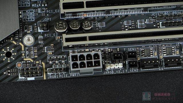 插槽物理設計上, M.2_4 插槽可看為 PCI_E3 的翻轉版。M.2_4 插槽真的有 X8 連接卻只