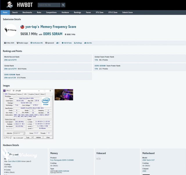 Intel Core Ultra 9 285K 與 ASRock Z890 Taichi OCF 平台記憶體超頻測試