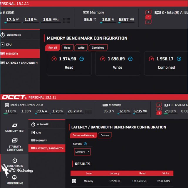 首先使用支援 DDR5 CKD 記憶體與 XMP 3.0 的 Intel Core Ultra 9 285K 測試平台進行