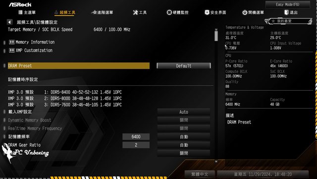 CUDIMM 記憶體的預設頻率也就是 JEDEC 頻率基本上都是 6400 MT/s,如果你忘記開 XMP
