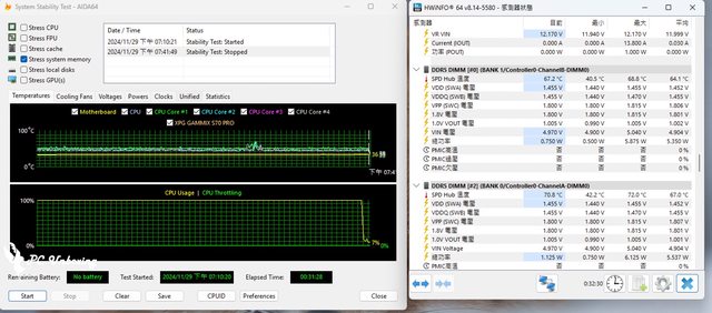接著透過 AIDA64 System Memory 針對記憶體的壓力穩定度進行測試,測試設定為記憶體