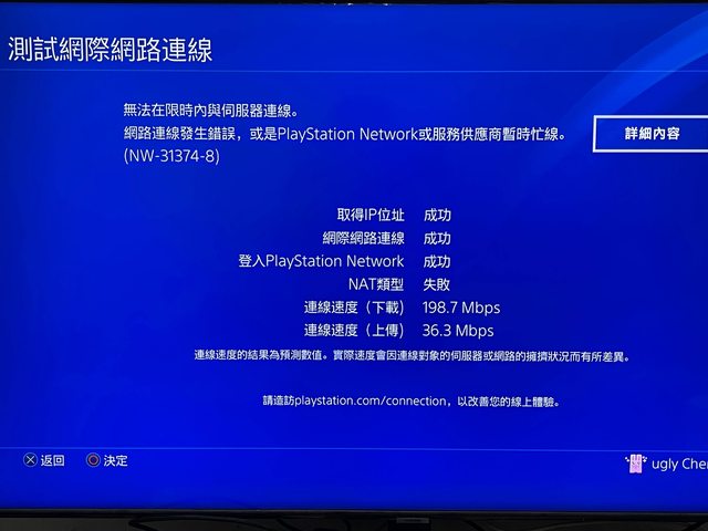 今天打NS,用電腦,看MOD,還有連WIFI網路都沒問題,但PS4的NAT類型就一直是失敗的 (