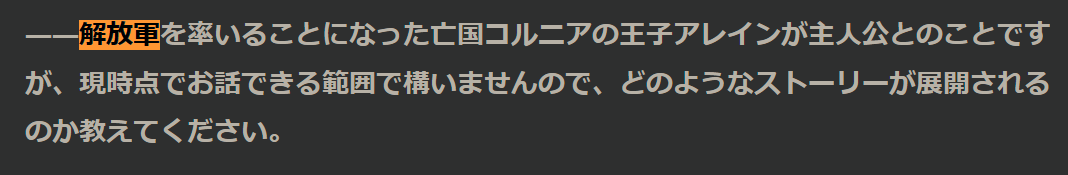 - 故事是王道貴種流離譚,失去祖國的王子在一次的叛亂中跌落谷底,