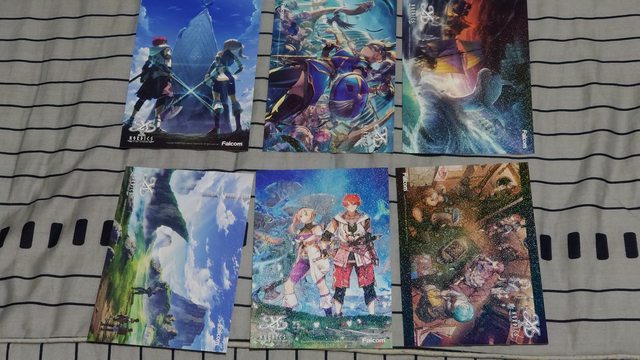 盒子裡的內容:遊戲片盒子、金屬徽章、六張明信片及迷你原聲帶