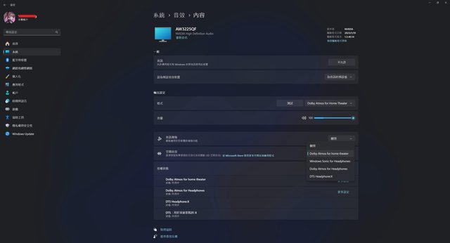 沒想到AW3225QF在DisplayPort介面一樣能回傳音效