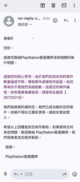 推 s213092921: 港帳解鎖了,也有收到香港PSN官方回信通知 09/13 08:58