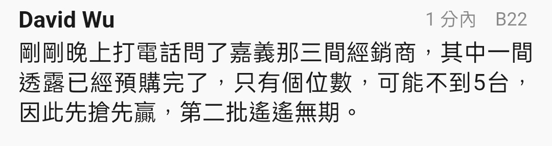 推 yayappp: 說遙遙無期的那些都是準備轉賣的黃牛吧 09/26 10:22