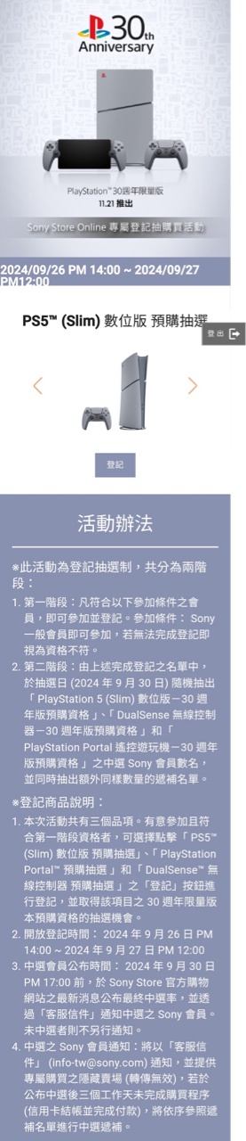 → kuku321: 索尼官網限制30小時遊玩時數的是抽30周年紀念版pro 還在 09/30 19:24