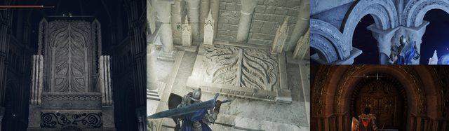 ▲椅子廟的「聖座」、瑟利亞魔法師鎮與儀典鎮裡的「聖座」變形體、樑柱上的紋路