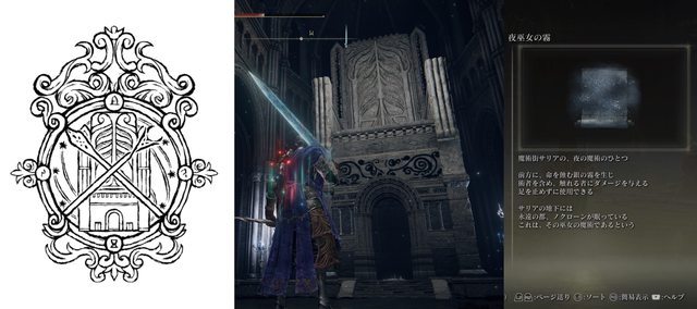 ▲瑟利亞紋章、椅子廟聖座,以及夜巫女之霧