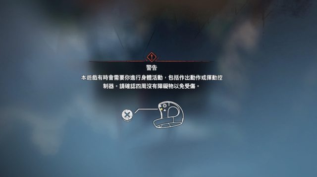 「本遊戲有時會需要你進行身體活動,包括做出動作或揮動控制器。請確認四周沒有障礙