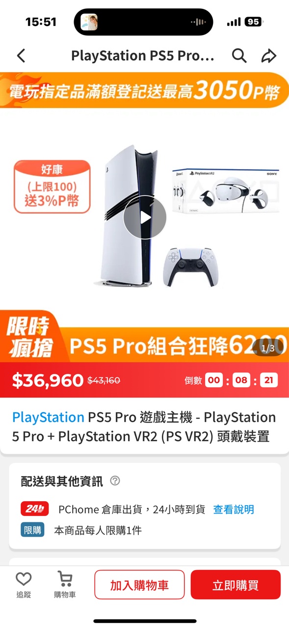 → slchao: pc momo 家樂福都沒搶到,集雅社沒賣,只能等晚上friday惹 11/07 14:02