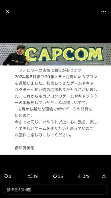 : 我已於2024年8月底從工作了30年零5個月的卡普空退休。感謝大家長期以來對我負責的遊