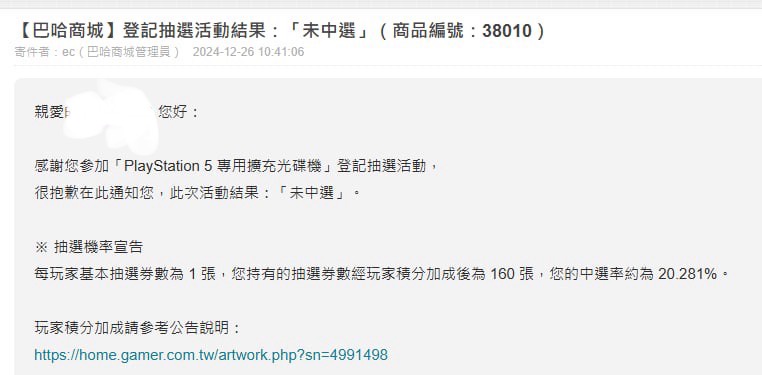→ Ramza: 巴哈分母巨大,中獎率...就!!~很玄啊!! 12/26 13:28
