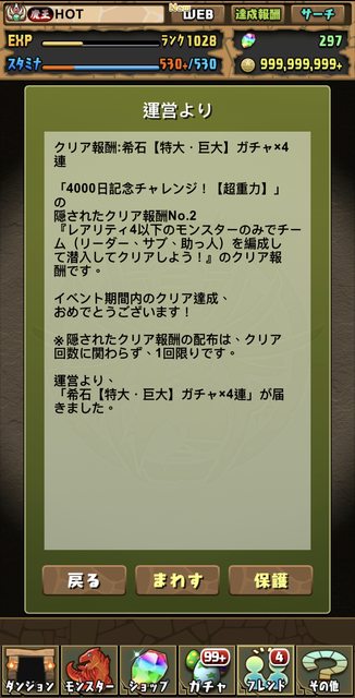 標題[閒聊] 4000日記念挑戰地城 隱藏條件