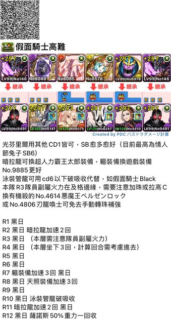 同樣的隊形可參考推特主@kasajizo_pad的編成,有更穩定的隊員裝備組法。