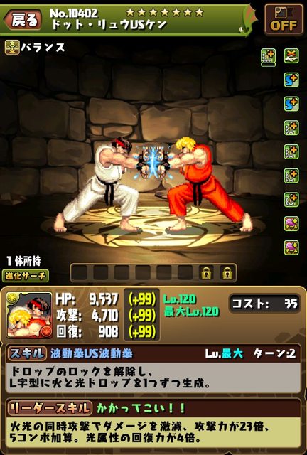 水珠10顆以上消除時,攻擊力27倍、追打傷害1。