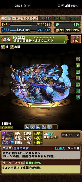 第一隻滿技(吃自己)滿297的角色是大國主