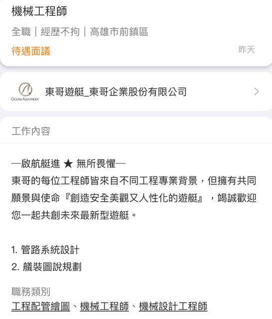 → your0207: W海運高雄有一些維修工程師,既然學歷稍微相關可以去吧11/04 20:43