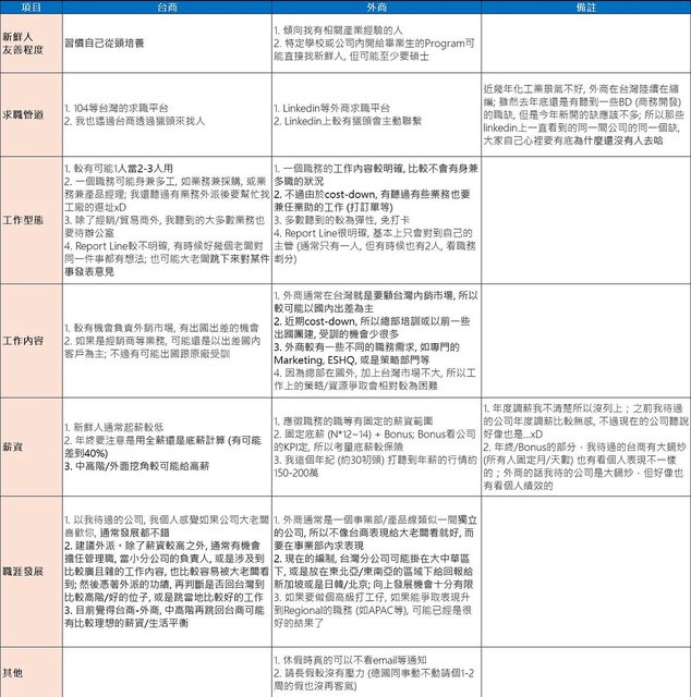 1)台商相對外商在年輕時比較有機會任管理職, 也有比較跨function的工作機會: