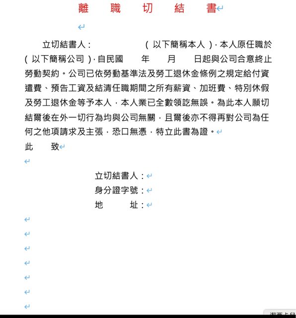 → sazabijiang: 改一下,拿到錢那段直接刪除。其實這份切結書的重點 03/28 07:46