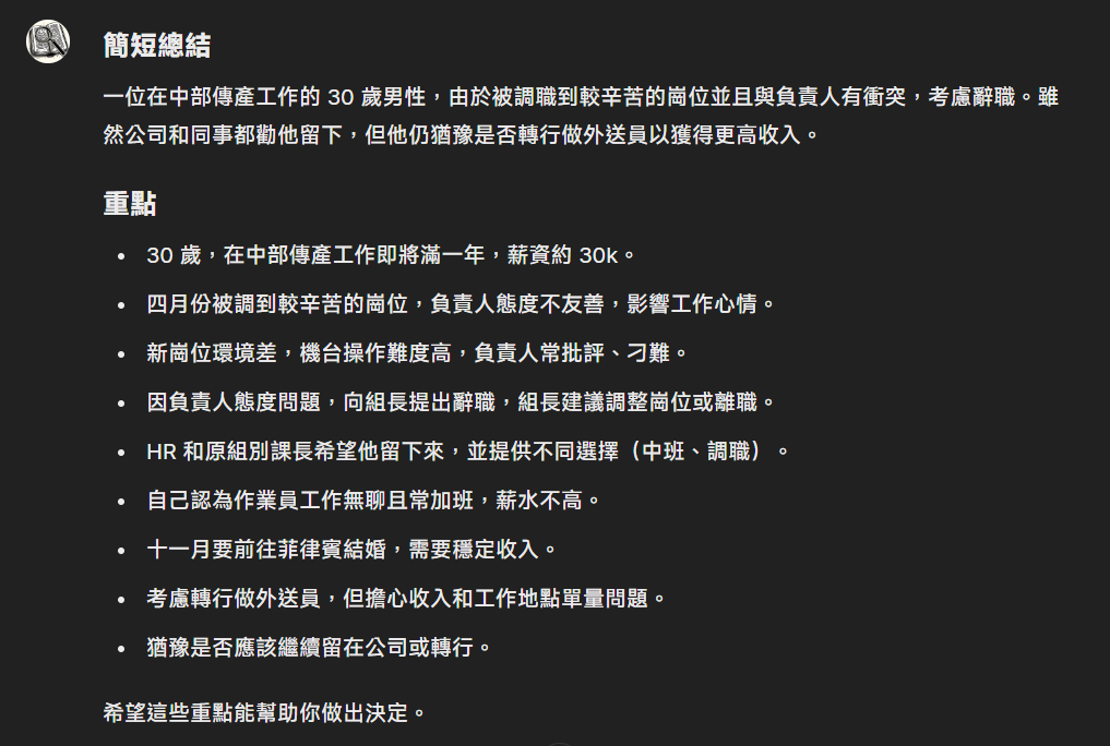 → GDing: 覺得可以先試試看中班順便存錢,然後找到再離職就不用煩惱06/24 21:01