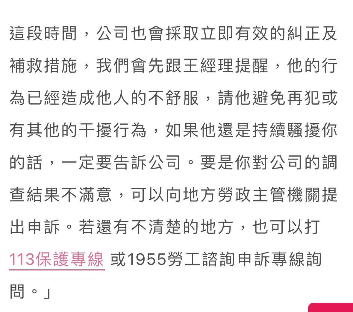 → nanakolin: 以前遇過,公司假裝記那騷擾同事的過,後來我就離職 07/03 04:24