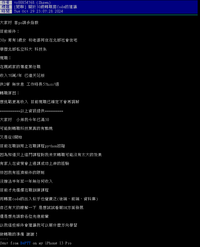 → hermithsieh: 然後現在對非本科的新人越來越不友善了,職訓只是起10/30 08:10