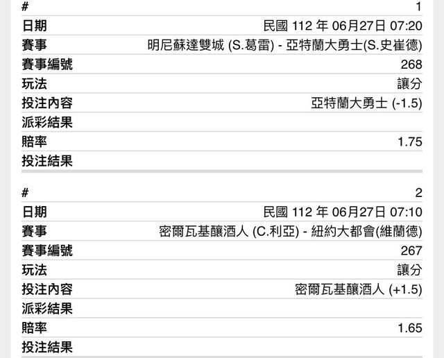※ 文章網址: https://www.ptt-site.org.tw/SportLottery/M.1687786032.A.DFA